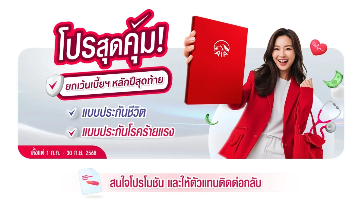 - การลดจำนวนเงินเอาประกันภัยต่ำกว่า 500,000 บาท สำหรับแบบประกัน เอไอเอ เพย์ ไลฟ์ พลัส (ไม่มีเงินปันผล)